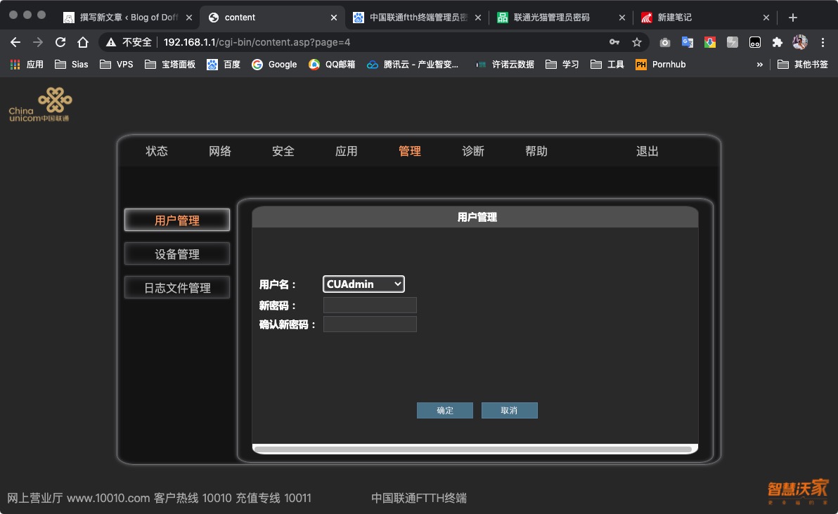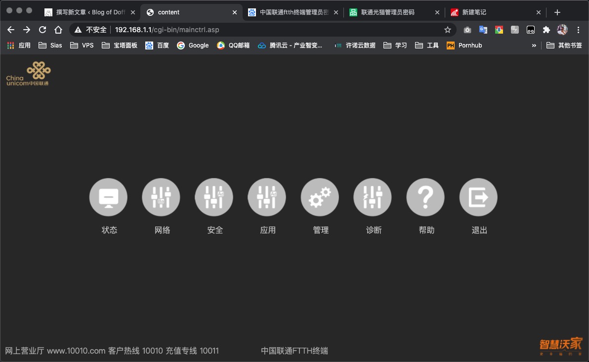 之前在家中使用的就是中国联通的光猫,最近因为有在学校附近租房子的需求,并且房东安装的也是中国联通的光猫,我们知道如果不使用管理员身份登录的话,什么都动不了,没有办法设置桥接,SSID也改不了,总之很让人不能理解的操作.