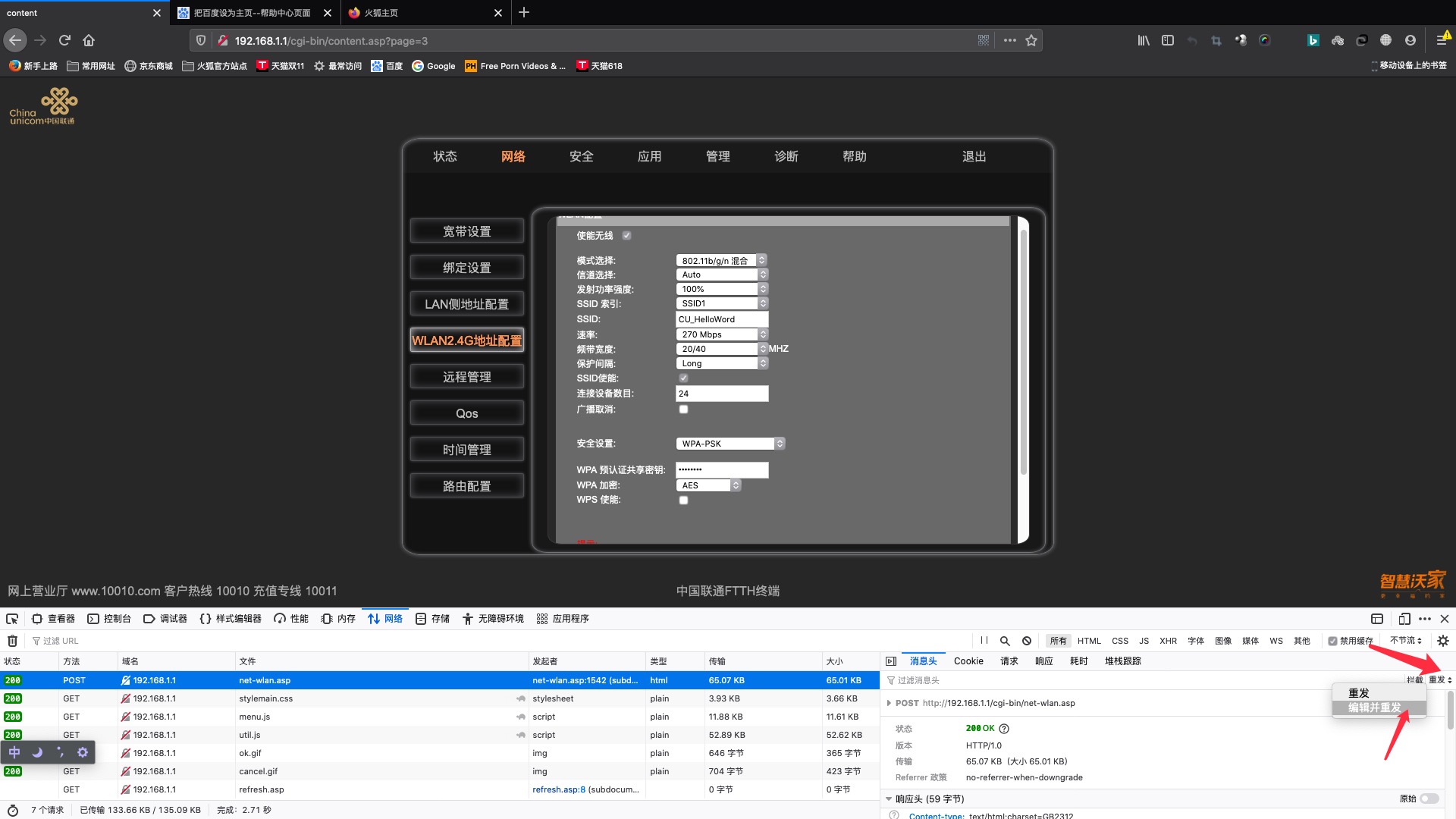 把这个post拦截下来找到SSID这个数据进行编辑重发: