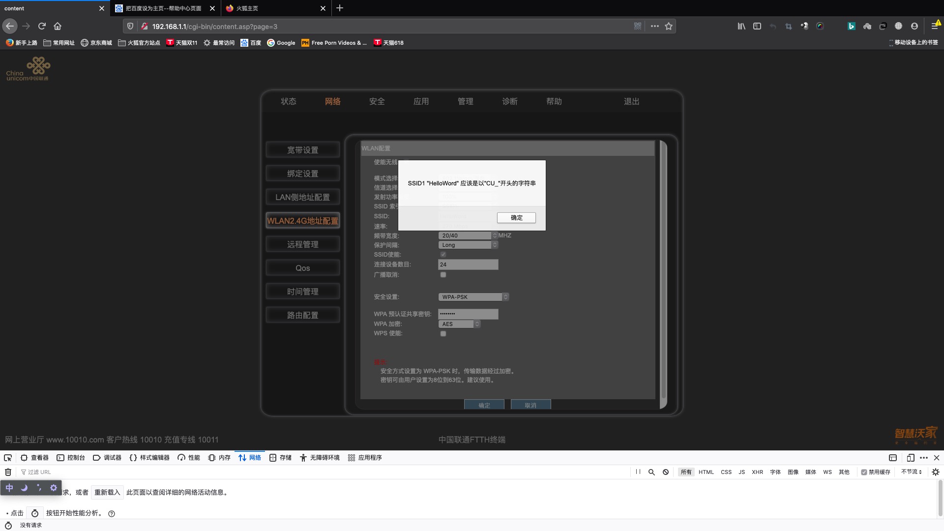 但是这种方式在我所租房的这个光猫型号上会报错: