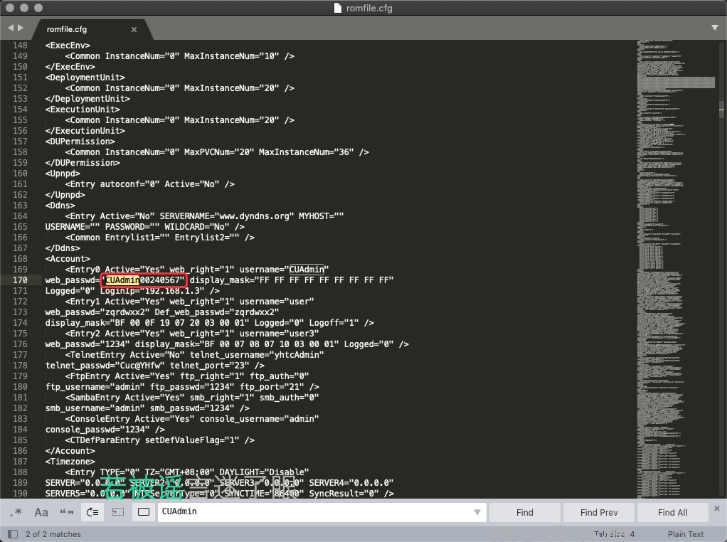我们下载完后,直接用记事本的方式将其打开,然后在里面搜索AdminPassword,找到后,位于CUAdmin+八位数字,比如CUAdmin12345678。