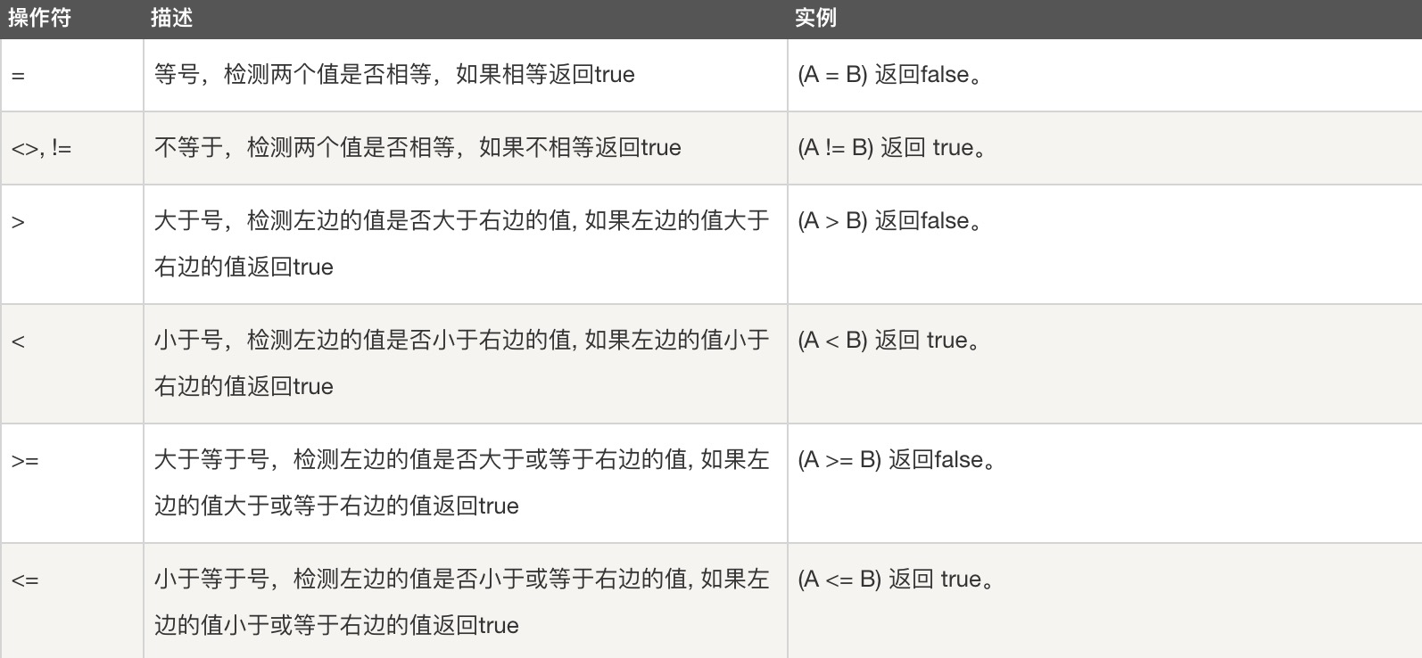 以下为操作符列表,可用于 WHERE 子句中。